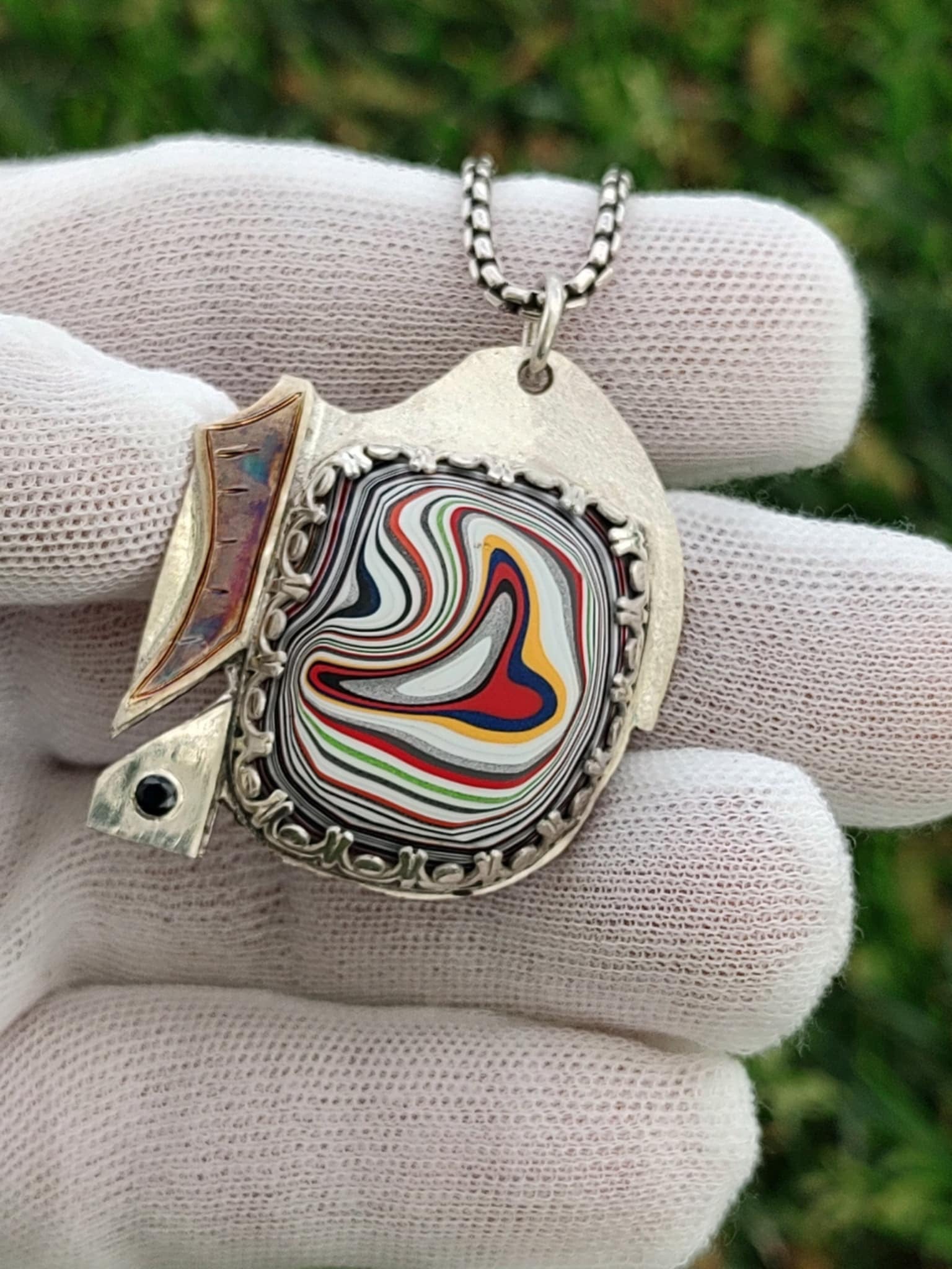Discover a unique piece of jewelry with our Motor Agate Pendant. Made from rare and stylish fordite with genuine GM paint, this pendant showcases the beauty of Detroit motor agate.